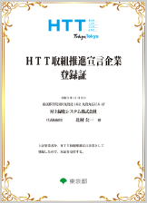 脱炭素社会の実現に向け、電力のHTT(へらす、つくる、ためる)の取り組みを行っている企業に東京都より認定されます。